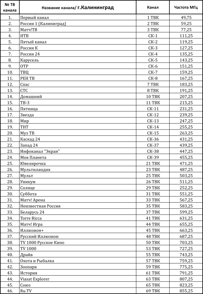 *данная сетка вещания для г. Калининграда, может меняться в зависимости от города